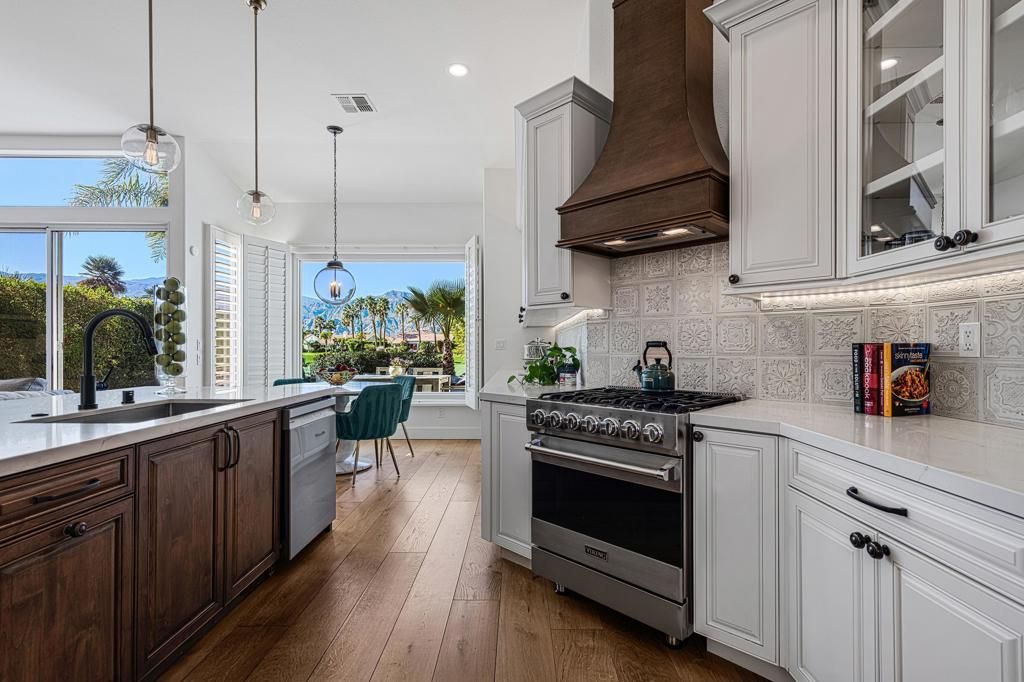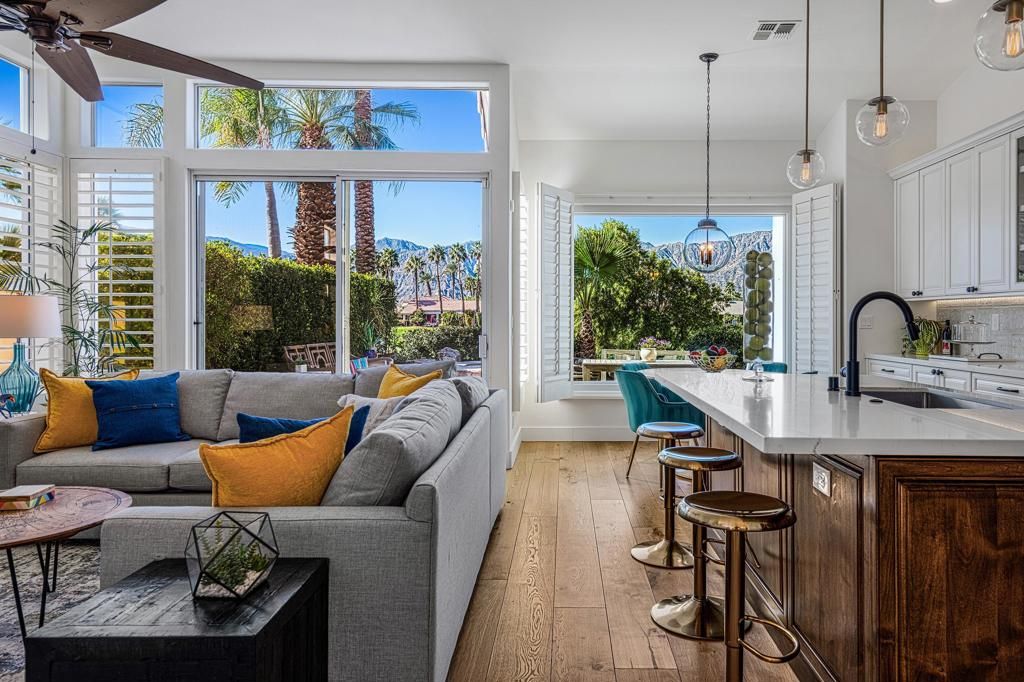 Wake up to sun-drenched mornings, sweeping mountain views, and the emerald fairways of the Pete Dye Dunes Course--desert luxury at its finest. Positioned along the 7th hole in La Quinta Fairways, this comprehensively reimagined 3-bedroom, 2.5-bath residence offers refined design and effortless living.A true ground-up renovation, not a cosmetic update, the home features wide-plank hardwood floors, custom cabinetry, bespoke millwork, and curated architectural details throughout. The redesigned kitchen showcases quartzite and natural stone countertops, full-height designer tile, a custom range hood, breakfast nook, and a complete suite of brand-new appliances. The space flows seamlessly into formal dining, ideal for entertaining.Spa-inspired baths feature marble and stone finishes with all-new plumbing fixtures. The primary suite is a private retreat with breathtaking golf course and mountain views. Outdoors, enjoy a resort-style pool and spa--perfect for sunset evenings under the desert sky.A fully transformed home offering timeless sophistication and elevated desert living.