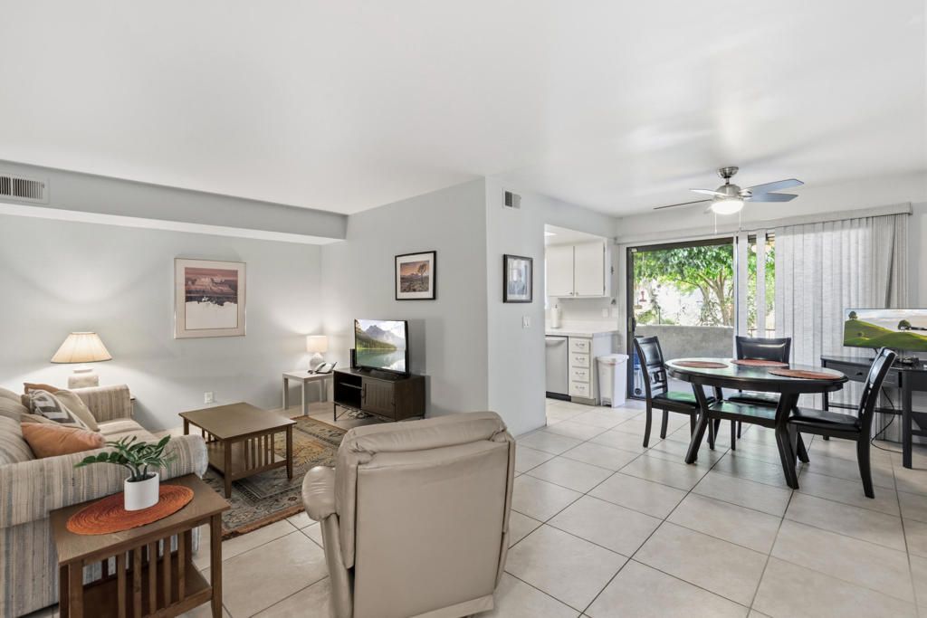 Welcome to resort-style living in the heart of Palm Springs! Located in the desirable Palm Canyon Villas, this beautifully situated 1-bedroom, 2-bath condo offers 887 square feet of comfortable living space.Enjoy the true Palm Springs lifestyle with breathtaking mountain views, swaying palm trees, and an unbeatable setting just minutes from shopping, dining, and entertainment. The thoughtfully designed layout provides a spacious feel, perfect for both relaxing and entertaining, with the added convenience of a second bathroom for guests.Surrounded by lush landscaping, palm trees, and stunning mountain views, this community captures everything people love about desert living.Whether you're looking for a full-time residence, weekend getaway, or investment opportunity, this condo checks all the boxes.Priced to sell--don't miss your chance to own a piece of paradise!
