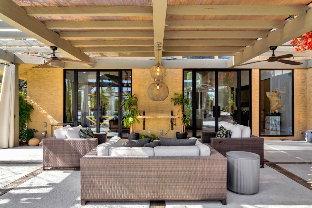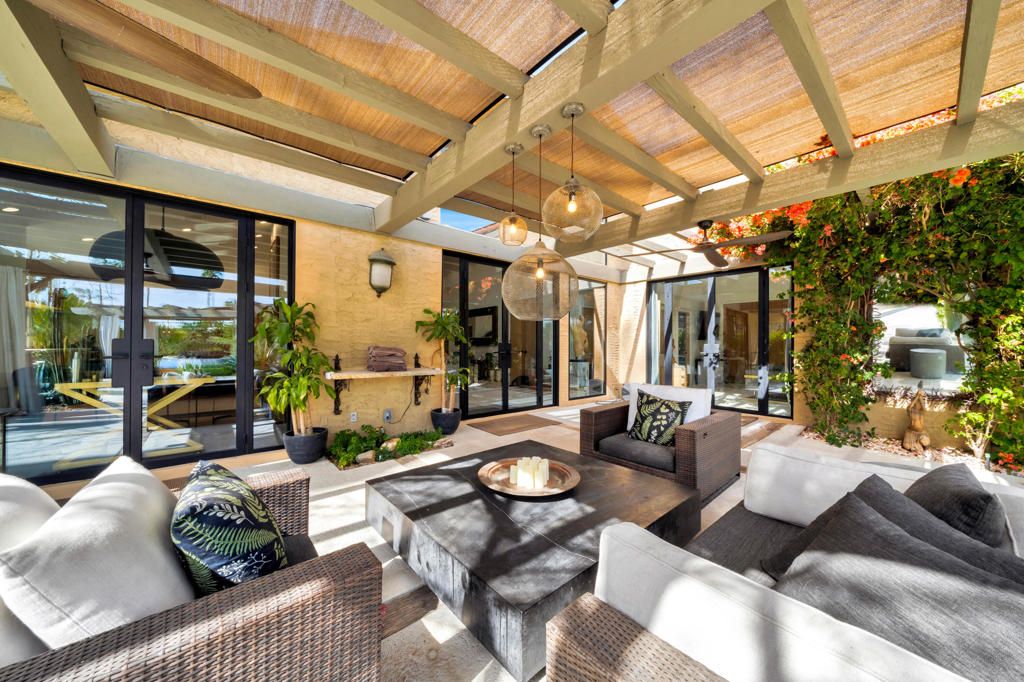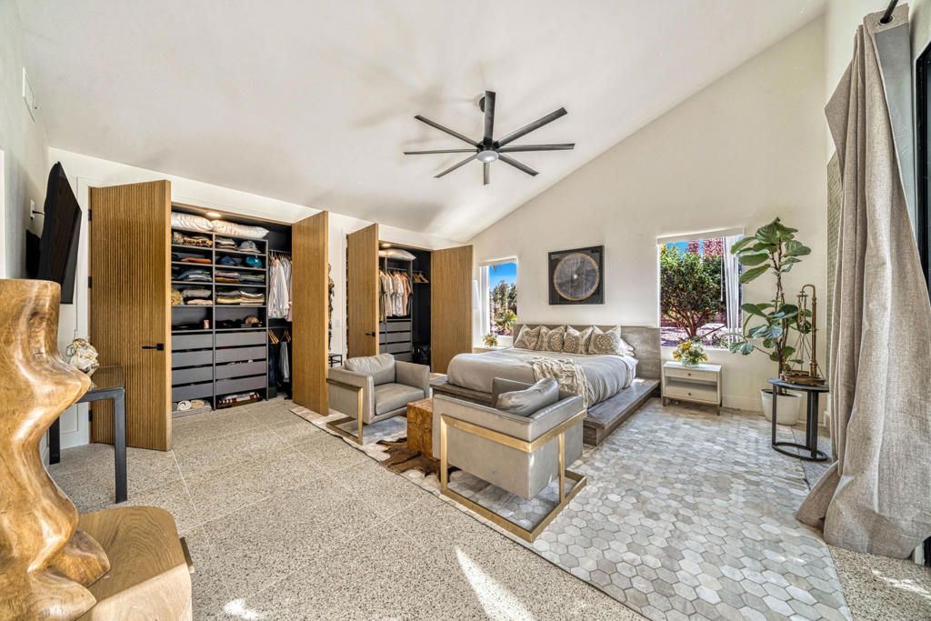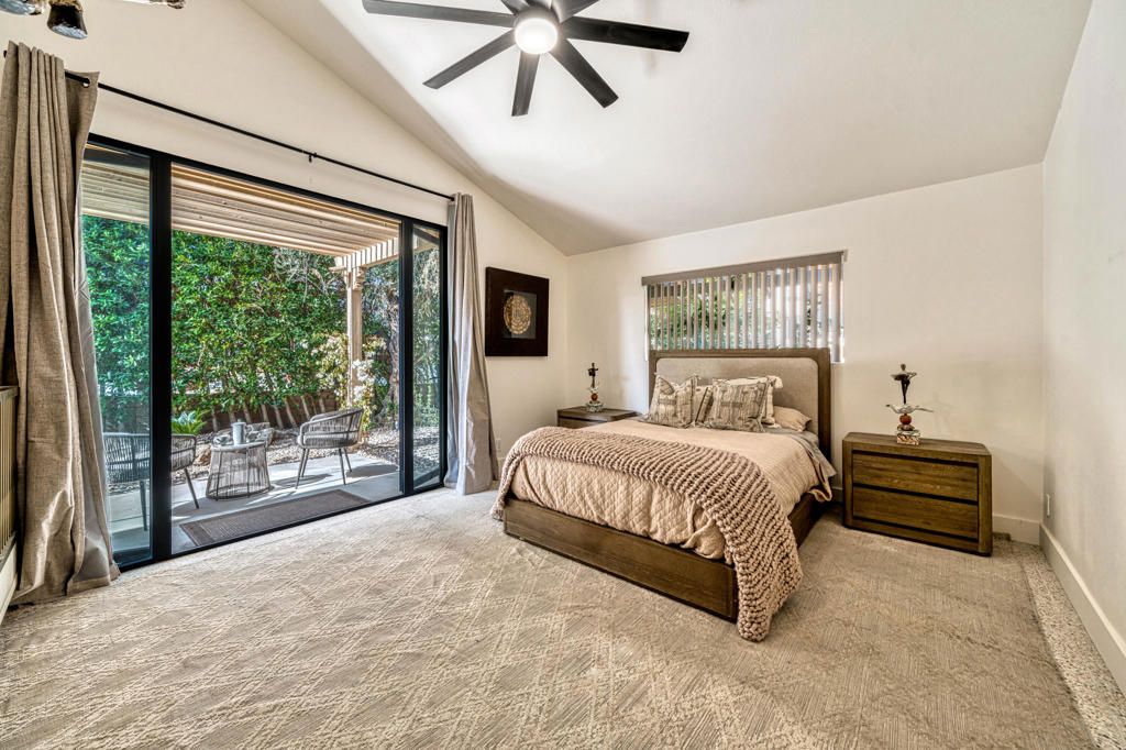 Modern Luxury Meets Resort-Style LivingDesigner Remodeled Estate with Breathtaking Indoor-Outdoor FlowExperience the pinnacle of California luxury living in this newly remodeled designer home, where every detail has been thoughtfully curated to inspire comfort, elegance, and effortless entertaining. Set on a beautifully landscaped 1/3-acre lot, this private retreat offers a seamless fusion of indoor and outdoor living with a resort-like ambiance.Entering the home you are welcomed by huge vaulted ceilings, Italian terrazzo-style tile flooring, new modern doors and custom cabinetry throughout. A fully reimagined open-concept kitchen is perfect for entertaining, featuring a large custom sushi-style island with prep sink, crystal quartzite countertops, and Miele appliances--a true chef's dream. A pass-through kitchen window enhances outdoor entertaining, perfectly connecting the kitchen with the expansive backyard and pool area. The interiors continue to boast all new custom modern oak cabinetry, designer lighting and fixtures, and French doors providing a personalized outdoor experience from each living space. A striking custom fireplace anchors the main living area, balancing warmth and modern design with built-in storage and style. A chic floor-to-ceiling glass penny tile powder room is set aside for the living area and guests.Each bedroom is a private retreat with its own en-suite bathroom, showcasing a new vanity, designer tile and elevated finishes. The primary suite offers a zen-like escape with a spa-inspired wet room, separate toilet closet, tranquil ambiance with ample natural lighting.Celebrating your outdoor living experience you will enjoy your newly renovated pool and spa, expansive shaded gazebo and multiple lounge areas great for large celebrations or intimate gatherings. The lush natural lawn is shaded by a mature olive grove, and enjoys a completely fenced yard for added security and privacy with tall ficus hedges surrounding the entire property.Low HOA. Gated community. Spa, pool, lighted tennis courts, RV Parking. Whether you're hosting guests or enjoying peaceful moments alone, this home is a masterclass in contemporary resort-style living. Chic. Private. Breathtaking.