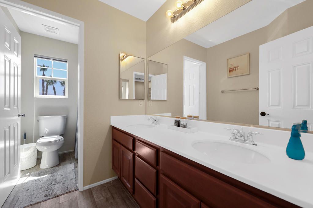 First showings begin Saturday, May 2nd. Welcome to Terra Lago, where this exceptional corner-lot home offers privacy, scenic beauty, and true resort-style living. With no neighbors behind, you'll enjoy breathtaking panoramic mountain views from your own backyard oasis--complete with a sparkling pool, tanning deck, spa, and a private putting green, perfect for entertaining family and friends.A gated front courtyard creates a warm and inviting entrance while offering an additional private outdoor space to relax. Inside, the open-concept design features a spacious family room that seamlessly connects to the kitchen, all overlooking the backyard and filling the home with natural light and stunning views.The primary suite is a true retreat, featuring a private balcony, large walk-in closet, and a spa-like bathroom with a soaking tub and dual vanities. Additional highlights include a two-car garage with extra space ideal for storage. Located within the highly desirable Terra Lago community, residents enjoy 24-hour guard-gated security and access to a 20-acre recreational lake, clubhouse, resort-style pools, fitness center, playground, and more. Short-term rentals are allowed, making this an excellent opportunity for a full-time residence, vacation home, or income-producing investment. Just minutes from the Terra Lago Golf Course, this home offers the perfect blend of luxury, lifestyle, and location.