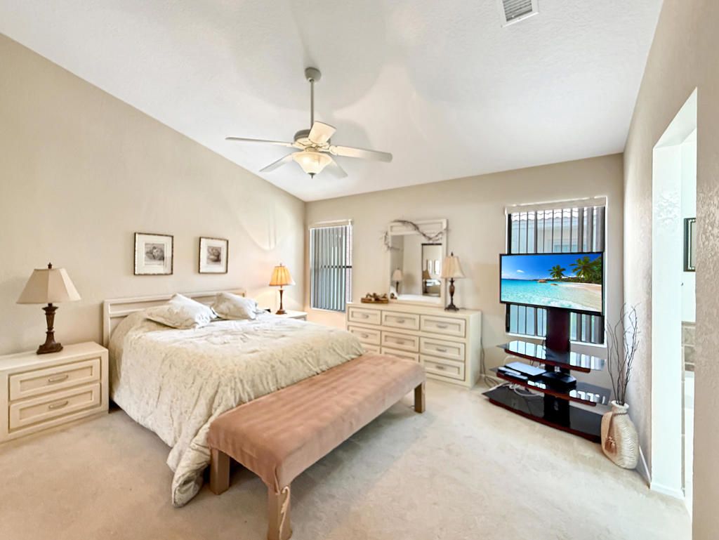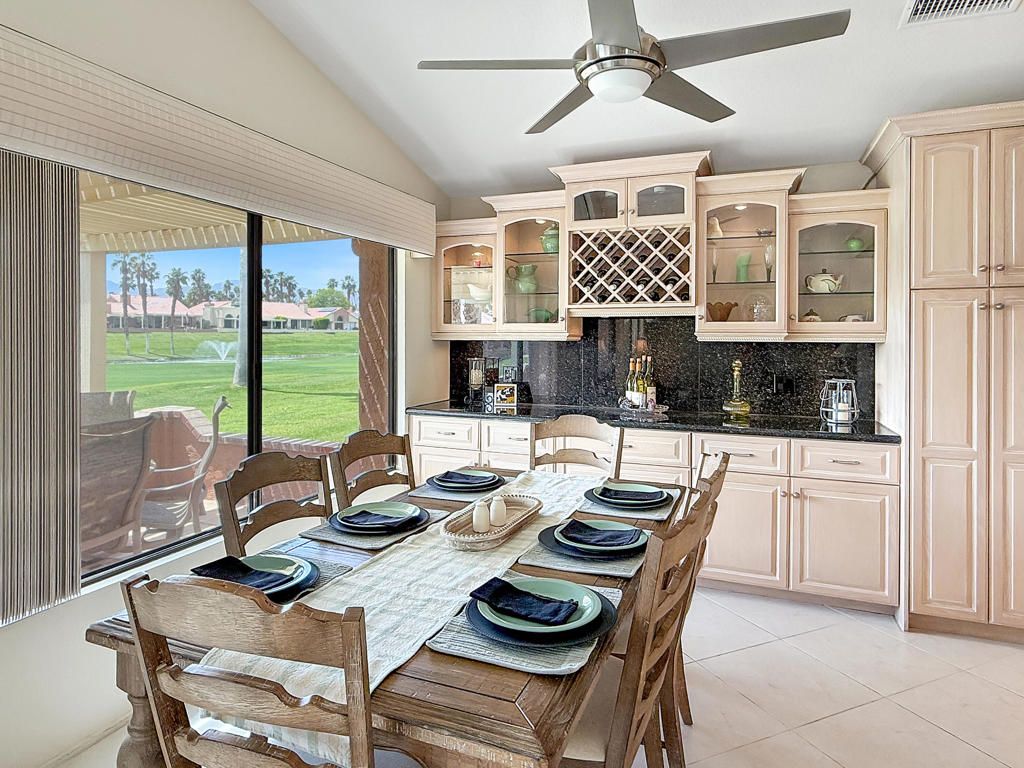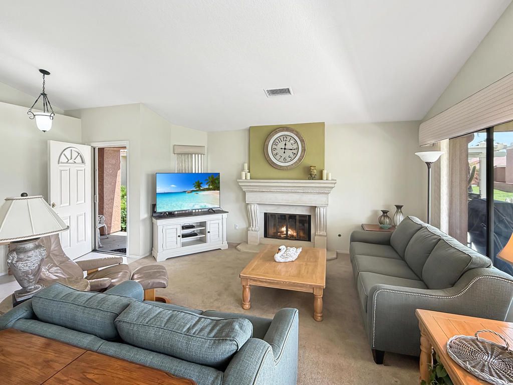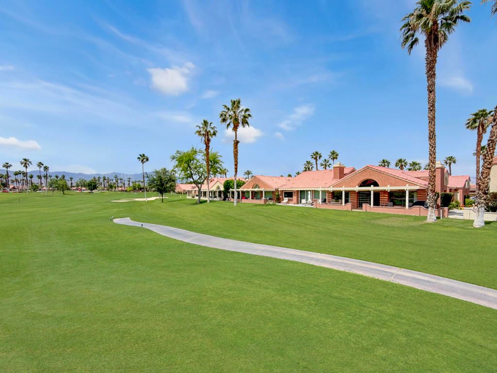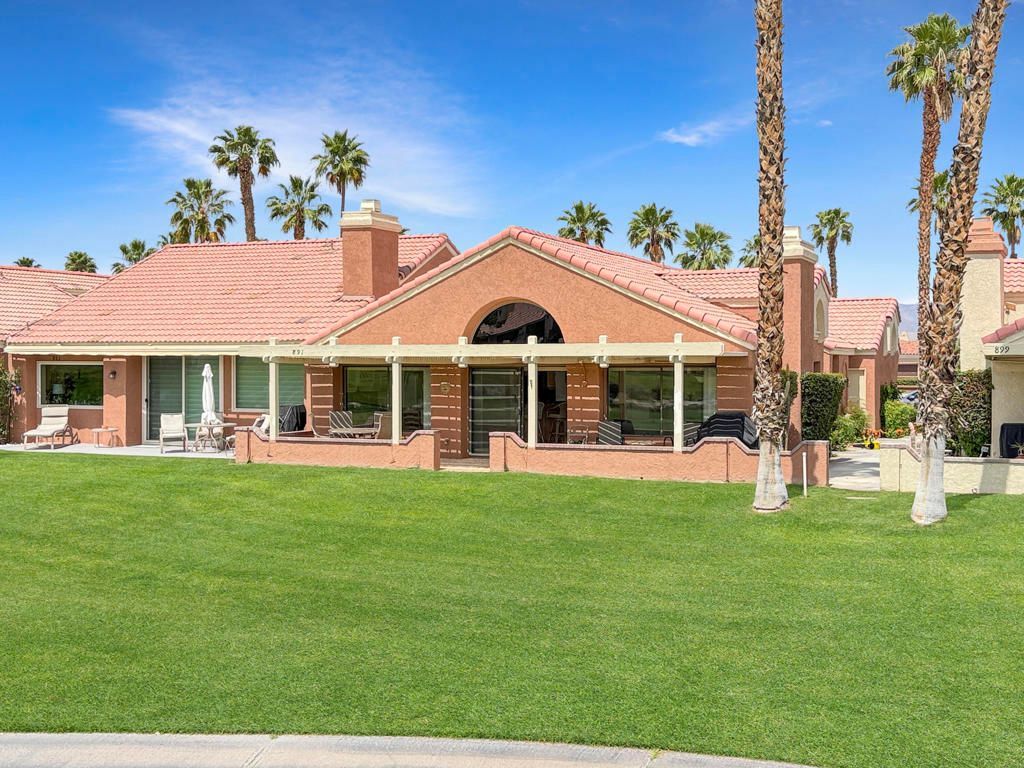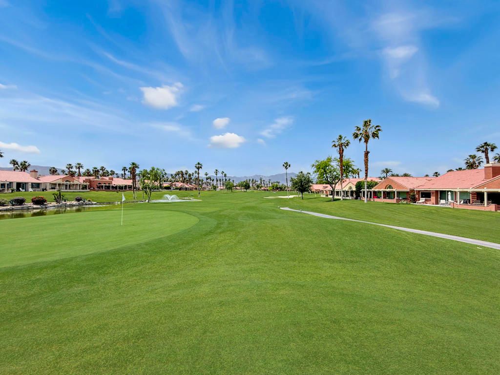 Unobstructed golf course views in the Oasis Country Club. Welcome to resort-style living at its finest in the guard-gated Oasis Country Club--one of Palm Desert's most vibrant and amenity-rich communities. Located adjacent to one of the courses beautiful fairway and green, this location captures sweeping fairway views and unforgettable desert sunsets that define the ultimate country club lifestyle. With soaring vaulted ceilings and expansive windows, the architectural design of this home truly takes advantage of the beautiful views. A spacious living room with a cozy fireplace combines with the dining room and kitchen to create a huge great room. Watch the game from the comfort of your couch while keeping an eye on what's happening on the course outside. Dinner parties take on new meaning as you watch yet another stunning sunset. A beautiful wine and coffee bar are adjacent adding to the convenience of your dining experience. The kitchen not only has an overabundance of cabinetry and storage, but it also features and walk-in pantry. The kitchen was designed to keep you connected with everything that is going on. It also has views of the beautiful golf course. The home truly takes advantage of our amazing California climate. Open the slider and it creates a wonderful indoor/outdoor living experience. Whether you are enjoying a morning cup of coffee, waving hello to your friends as they play through, or sipping on your favorite cocktail as you watch another gorgeous sunset, this patio is the place! This floorplan was designed to have two primary bedrooms each with their own en-suite bathrooms. This is the perfect floorplan for guests or family because they truly have their own suite. The primary bedroom has an additional bonus. Step outside to your private patio off the bedroom and you have your own private space to get away.Life at Oasis Country Club is truly exceptional. Residents enjoy access to a full-service clubhouse with dining and social events, an active golf community with pro shop, tennis and pickleball courts, fitness center, multiple pools and spas, and a beautifully designed putting course. Whether you're seeking an active lifestyle or peaceful desert retreat, this community offers it all. A rare opportunity to own a premier golf course property and experience the very best of Palm Desert country club living.