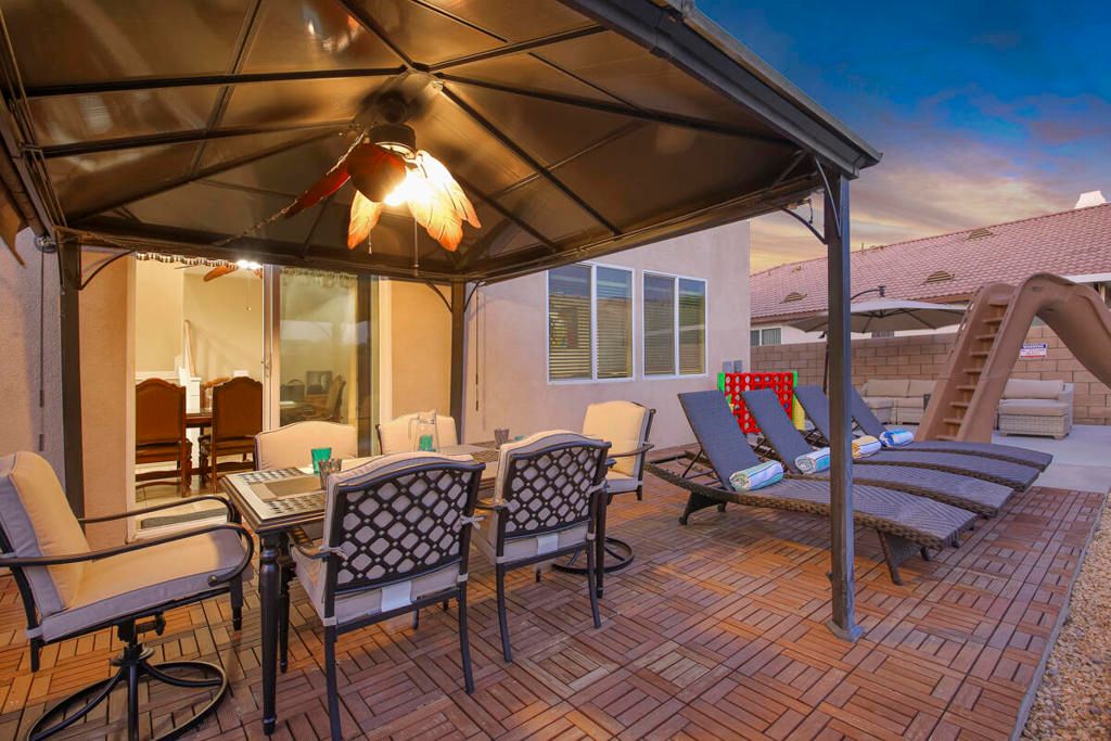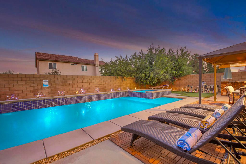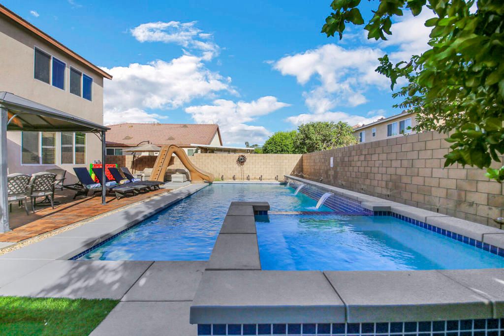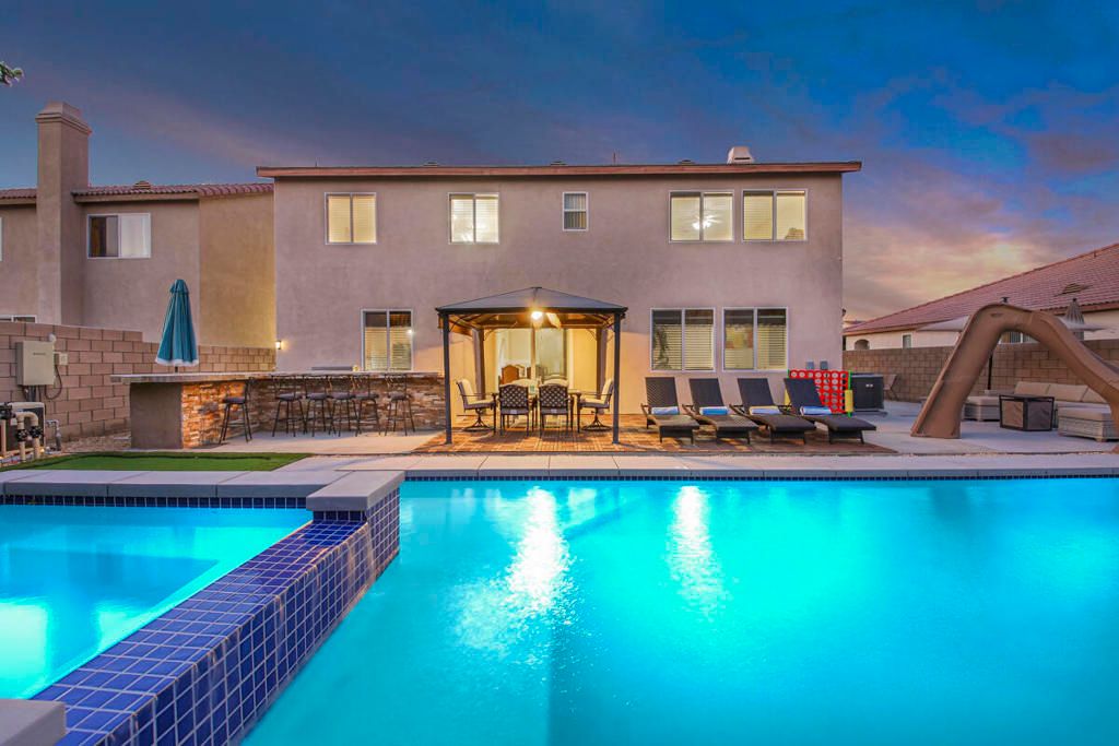 **Welcome to La Morada** Discover this no HOA community in Coachella, highly sought after for the Coachella and Stagecoach music festivals, along with numerous golf, tennis, sports, and art events!This spacious property offers 2,976 square feet and features six bedrooms and three full bathrooms. Enjoy two living areas: a family room and a billiard room. The kitchen boasts granite countertops and an ample dining area, along with a separate formal dining room. The sixth bedroom is conveniently located on the first floor with a full bath.Step outside to a stunning backyard featuring a brand new $80,000 swimming pool and spa with a slide, fully landscaped for your enjoyment, alongside a custom built-in BBQ island. Additional highlights include a three-car tandem garage with an epoxy floor finish, custom storage, and a converted game room stocked with the latest and retro games, as well as gym equipment. The property also provides impressive wide double-gate RV access and extra parking.Short-term rentals are permitted, and it's located within the Lower IID utility district. Make this your ideal vacation rental today!