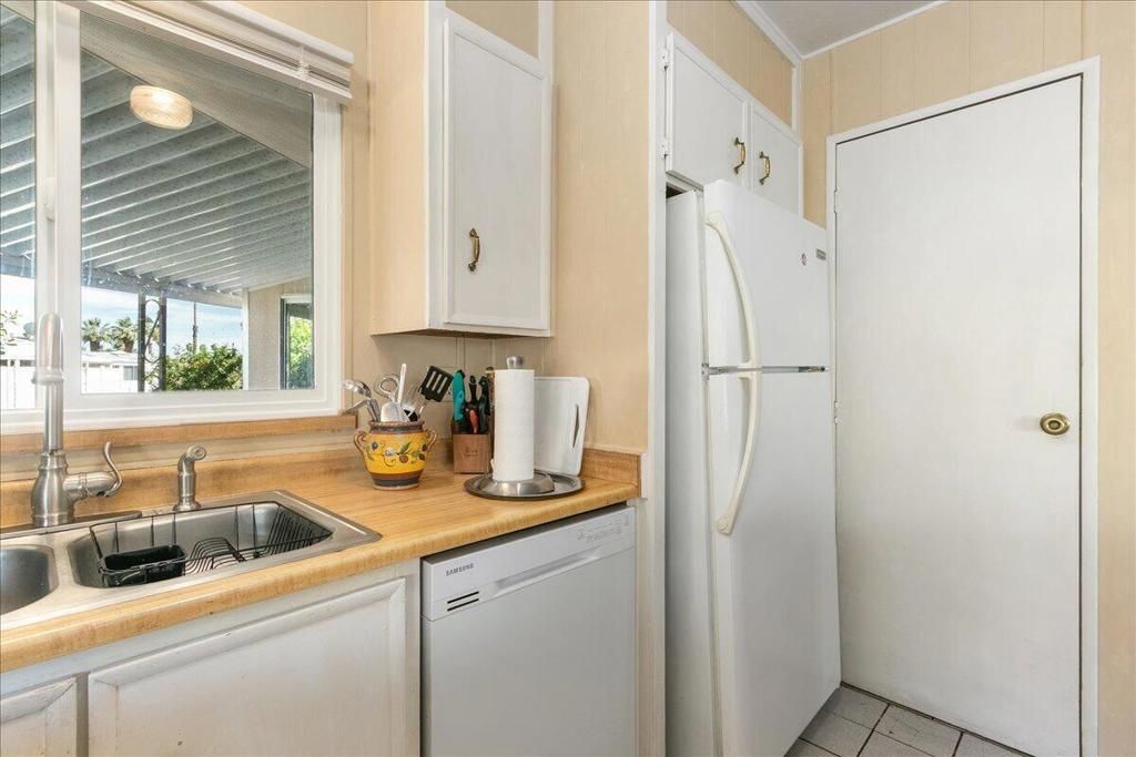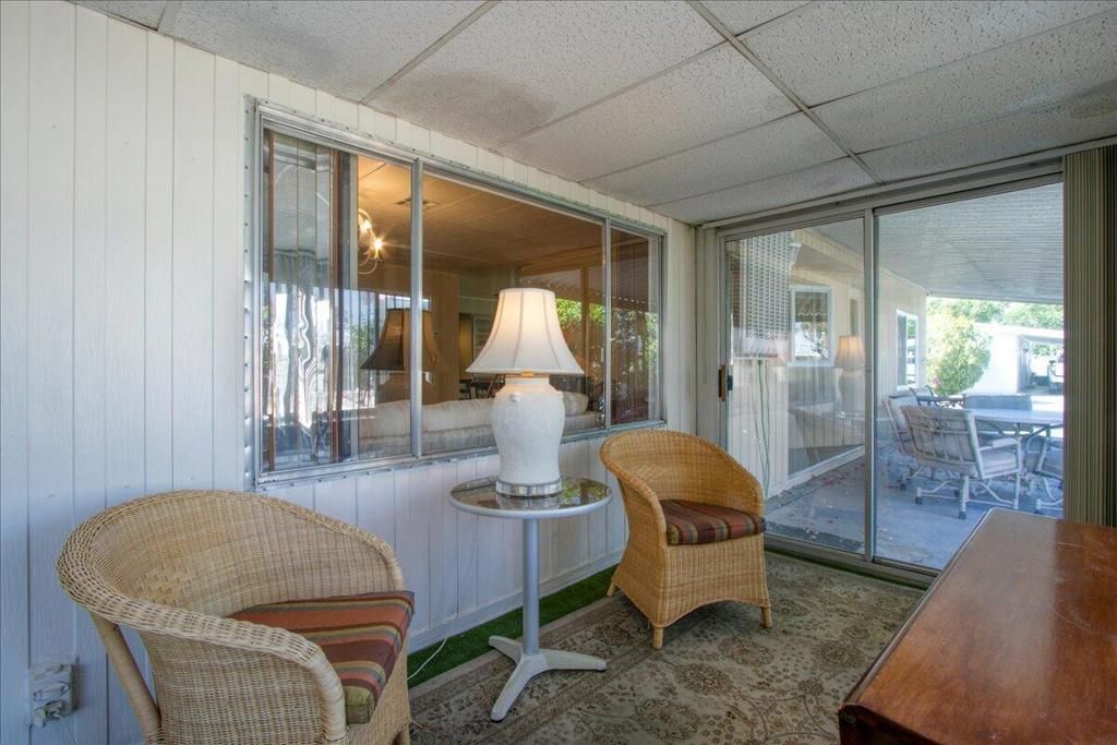 El Dorado Palms, You Own the Land, Location is exceptional, Next to Traders Joes, shopping, dining, and Casino. Airport is short drive Walmart and major shopping is on Ramon Road. This 55+ active community allows 30 days lease of your home, or longer, you can be here part time or full time, makes a excellent second home, furnished and turn key if you like. Indoor patio and outdoor patio allow for any season enjoyment, you are in the heart of Palm Springs for under $300K. Ample parking in carport and swing open fencing for extra car or storage. Inside wood flooring, two areas for eating and entertaining the flow of the floor plan is perfect for having gatherings. Indoor W/D, area with storage, pantry in kitchen. Location is close to tennis courts and 2nd Pool. Location is everything and this one will check off all the boxes. Come see!