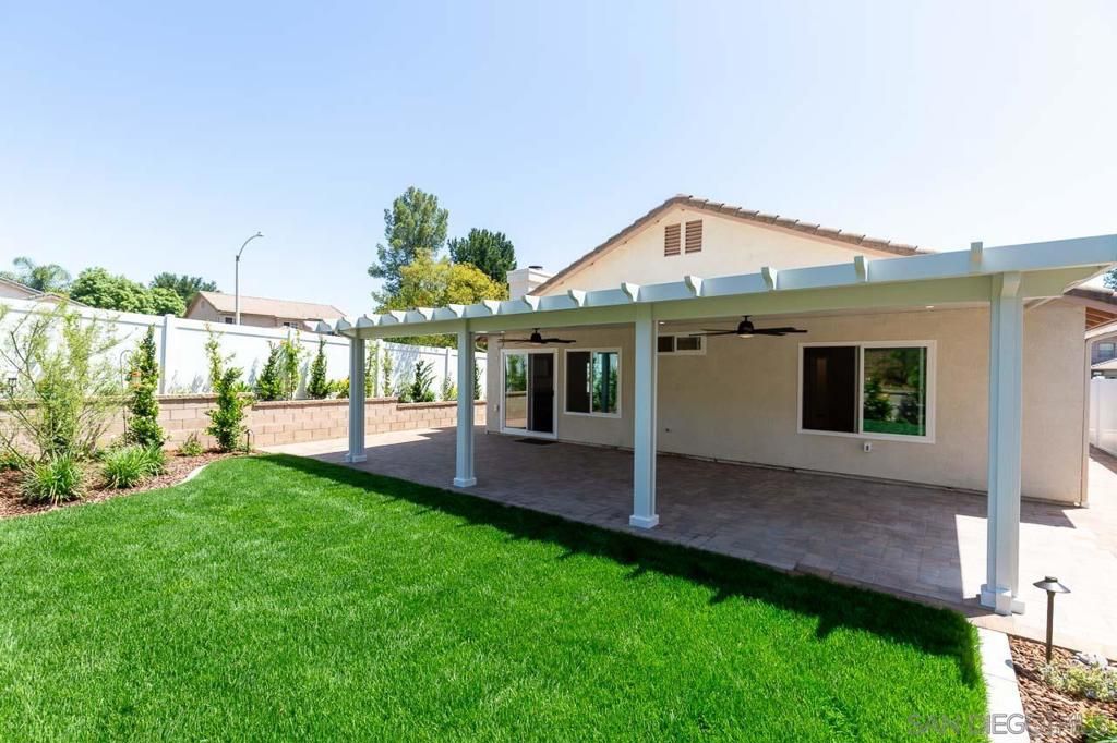 Desirable and hard-to-find single story home on a corner lot in the highly sought-after Paloma Del Sol community of Temecula. Recently landscaped and hardscaped, this home features a huge, covered patio and paver upgrades, creating an ideal indoor-outdoor living space in a quiet, well-maintained setting. This is a rare opportunity to own a move-in ready single story with extensive upgrades already completed in one of Temecula's most desirable communities. The floor plan offers a functional and open layout with a spacious living room and dining area, plus an open kitchen that flows seamlessly into the family room, highlighted by a new sliding glass door to the backyard. Interior improvements include new Milgard Trinsic V300 windows and slider with screens, fresh interior paint (including garage), new window coverings, updated switch plates, HVAC vent covers, and a reverse osmosis system. The home also features a combination of ceramic tile and laminate flooring for durability and easy maintenance. The backyard has been extensively upgraded and is a major standout feature. Enjoy a permitted 32' x 15' patio cover with lighting and ceiling fans, new patio pavers, and a side walkway with proper drainage to the street. The yard includes 167 linear feet of permitted retaining walls, a new lawn with sprinklers, and all new landscaping with drip irrigation (8 stations), mulch, and new plants. Additional enhancements include wired and solar landscape lighting, freshly stained fencing, a new gate, motion sensor lighting, Ring doorbell, and a dedicated BBQ area"”perfect for entertaining. Exterior upgrades also include freshly painted trim, railing, and front door, color-matched rain gutters connected to subsurface drainage, new exterior outlets for patio use, and new hose bibs with a water pressure regulator. Located in Paloma Del Sol, residents enjoy access to multiple community pools, parks, playgrounds, walking trails, tennis courts, and even disc golf, all with low HOA dues and close proximity to top-rated Temecula schools, shopping, dining, and commuter routes.