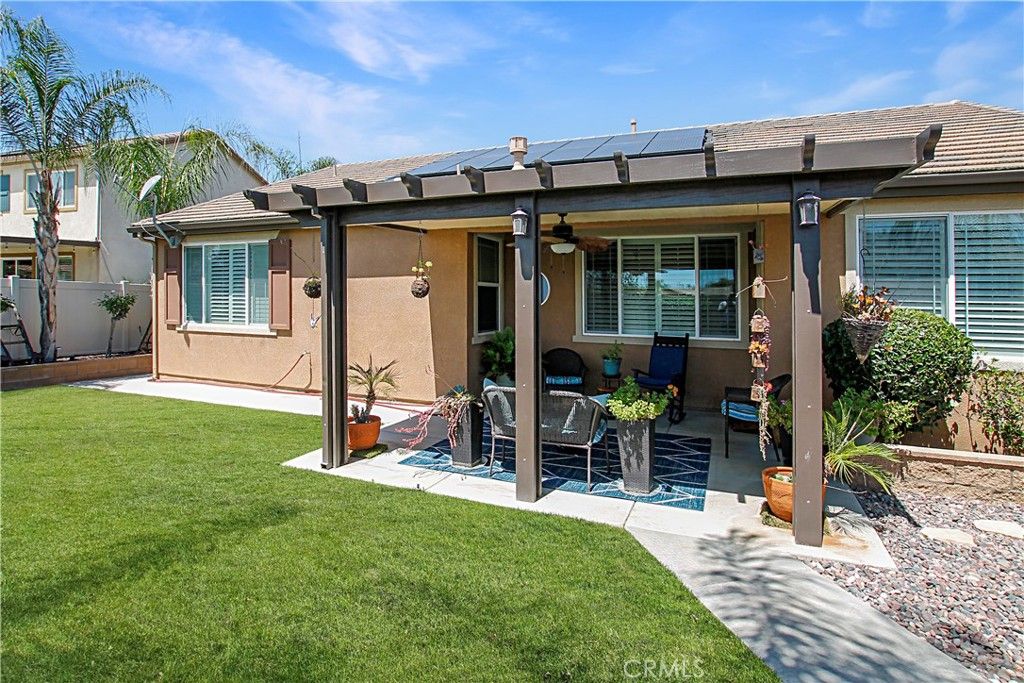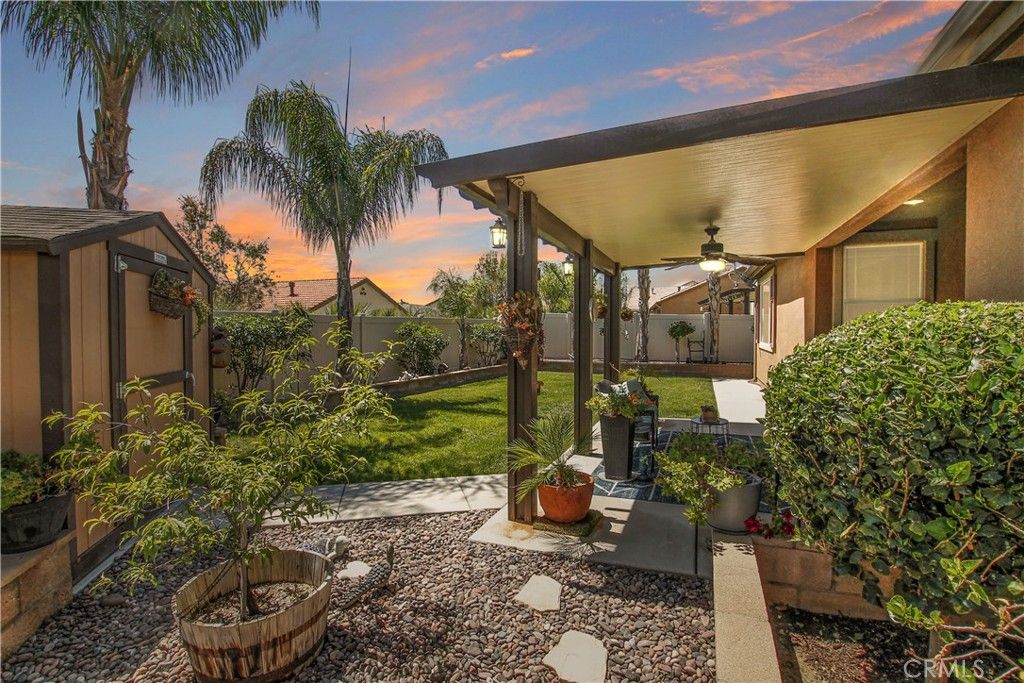 The exterior is just as impressive, with beautifully landscaped front and back yards offering a peaceful, low-maintenance outdoor setting. Relax in the outdoor covered living area cooled by a ceiling fan. From curb appeal to interior upgrades, this home delivers comfort, style, and move-in-ready convenience.
