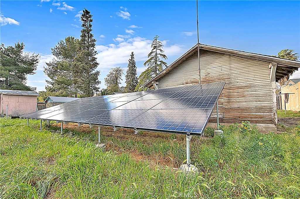 The solar panels are conveniently located toward the back of the property, and the home sits on a large lot with plenty of space to expand or create your vision.