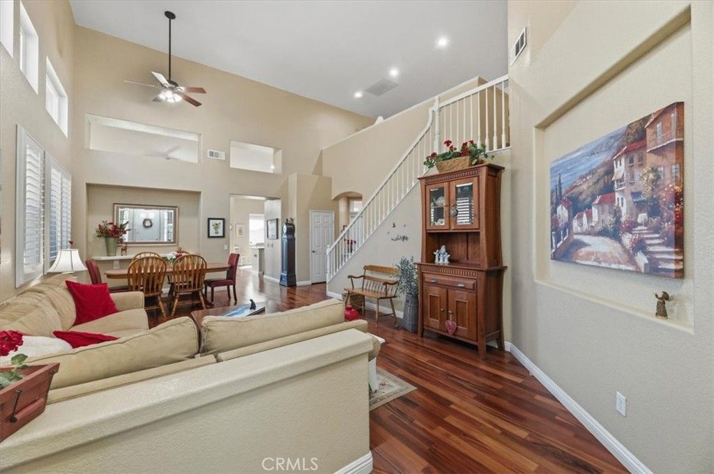 Experience elevated living in the highly coveted Tuscany Hills community. This stunning residence spans over 2,400 square feet of thoughtfully designed space, blending comfort with a view that will take your breath away. The heart of this home is defined by its incredible orientation: enjoy panoramic views of Canyon Lake from every single window at the rear of the property. Whether you're waking up or hosting friends, the shimmering water serves as your permanent backdrop. As you enter the home you'll notice the gorgeous wood flooring that is carried throughout the downstairs. The spacious primary suite is conveniently located downstairs, offering privacy, dual vanities, and those signature lake views. The home has great curb appeal and includes a 3 car garage. Two other bedrooms and a large loft are located upstairs. The loft included a built-in wall unit as well as a desk. Located close to the club house offering a Junior Olympic-sized pool, fitness center, picnic areas and sports courts as well as a children's playground. Tuscany Hills is a charming community located just off the 15 fwy allowing for quick access to wherever you want to go with shopping and restaurants close by.