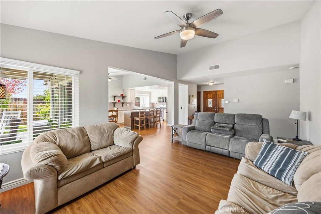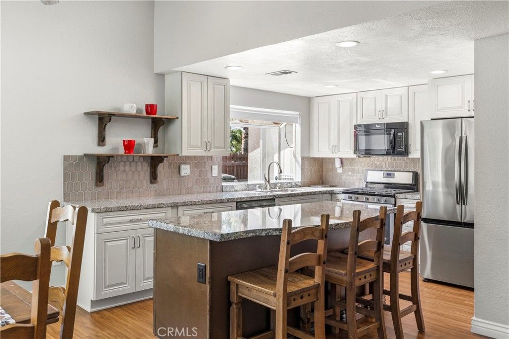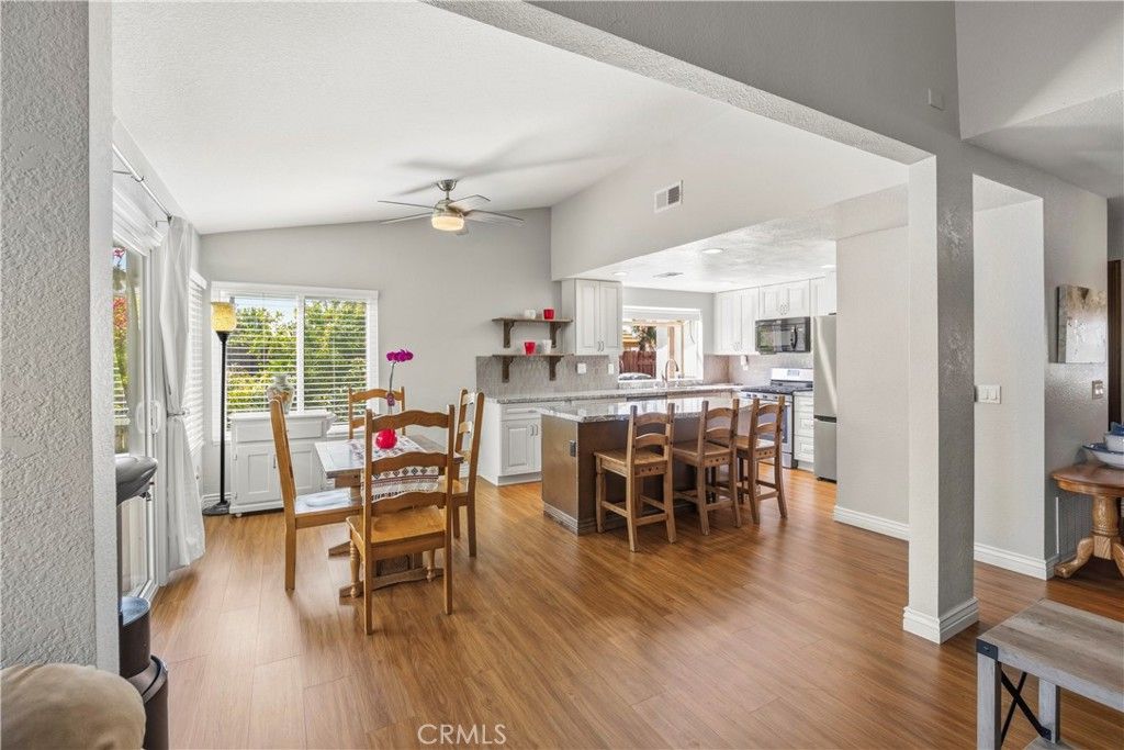 Discover the perfect blend of modern elegance and outdoor serenity in this beautiful 3-bedroom, 2-bathroom residence located in the highly sought-after La Sierra community. From the moment you step inside, you are greeted by an abundance of natural light streaming through newer energy-efficient windows, which beautifully illuminate the sleek laminate flooring and designer finishes. The heart of the home is a completely remodeled chef's kitchen, featuring a massive center island that serves as the perfect hub for entertaining, casual dining, or gourmet meal prep. The inviting living room centers around a cozy fireplace, creating a warm atmosphere for relaxation. Throughout the home, stunning wood doors add a touch of sophisticated craftsmanship and timeless character to every room. Step outside to your private oasis"”a generously sized backyard designed for quintessential California living. Whether you are hosting weekend gatherings under the expansive covered patio or wandering through your lush landscape, you'll love the variety offered by multiple mature fruit trees. This outdoor space offers both a peaceful retreat and a functional private orchard.