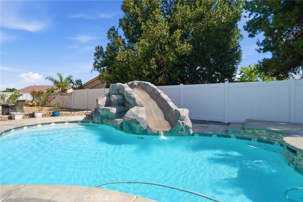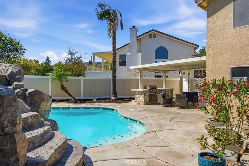 A resort-style pool and spa (recently resurfaced), A fun rock slide feature, Covered seating area, Built-in BBQ and refrigerator, Perfect for hosting, relaxing, and making the most of Southern California living.