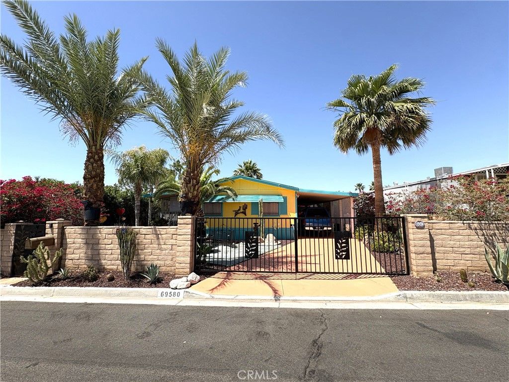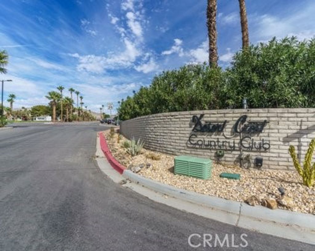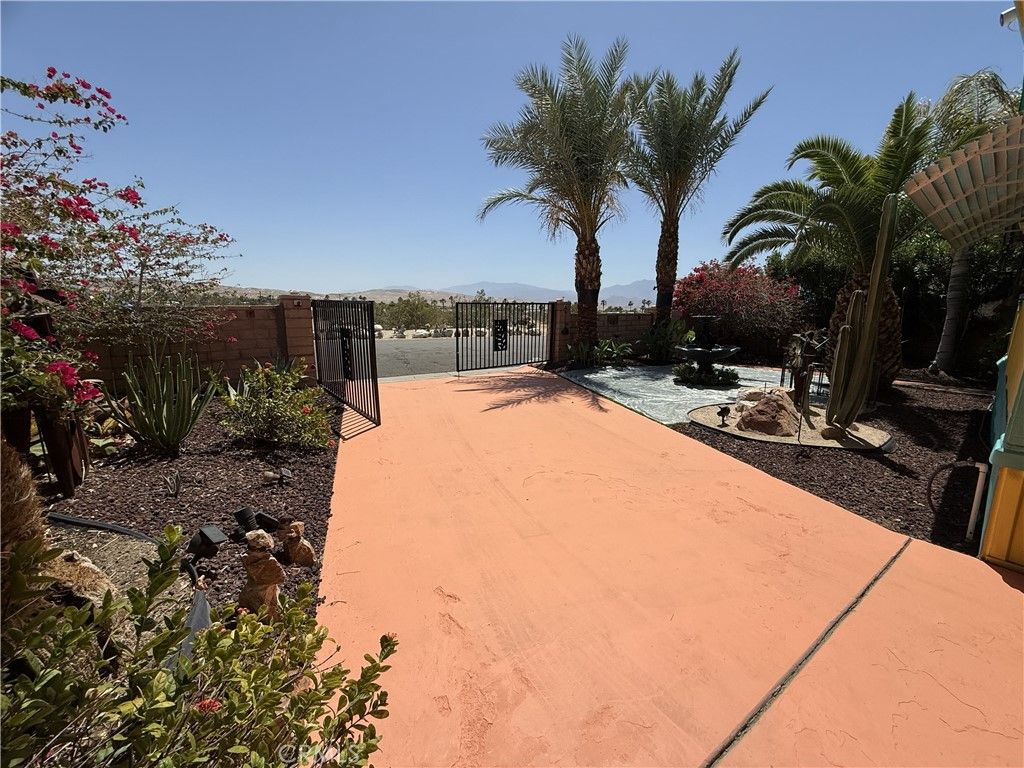 Welcome to Desert Crest Country Club and this well-maintained 3 bed, 2 bath desert oasis with gorgeous mountain and desert views, with a bonus sun room, located in a 55+ Desert Hot Springs community where you own the land"”an excellent opportunity for comfortable and affordable desert living. A pet lover's dream. Inside, you'll find a spacious living area that connects easily to the kitchen and dining space, creating a practical layout for everyday living. Both bathrooms have been previously updated, and the indoor laundry area near the kitchen adds convenience. The home shows pride of ownership and has been carefully cared for over the years with improvements made inside and out. The bonus room with patio access offers flexible space that can be used as a hobby room, office, guest area, or additional living space depending on your needs. Outside, the property is a fully enclosed with brick perimeter walls and a wrought-iron gate, providing added privacy. The custom-painted driveway, mature trees, and fruit trees add character to the yard, while the front-yard waterfall feature creates a peaceful outdoor setting as you gaze into the desert valley. Central air conditioning helps keep the home comfortable during warm desert summers. If you're looking for a move-in ready home with land ownership in a 55+ community, this property offers a great combination of space, privacy, and value.