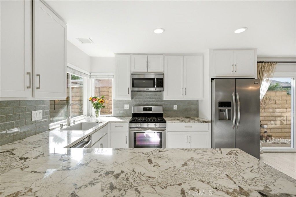 Beautifully upgraded South Corona home featuring a remodeled kitchen with updated cabinetry and appliances, complemented by stylish tile flooring and recessed lighting throughout. Major system improvements include a newer roof, updated AC with full ducting, and a whole house filtration system added for improving health safety, enhancing water taste, and extending the lifespan of plumbing and appliances. Both bathrooms have been tastefully renovated with new tile, countertops, and fixtures. The backyard is designed for low maintenance and enjoyment with artificial turf, improved irrigation, and thoughtful landscaping, plus a private viewing deck atop the slope where you can take in scenic views all the way to Big Bear on clear days! Additional driveway space adds to the home's overall convenience. Located in a highly sought-after South Corona neighborhood known for its family-friendly atmosphere. This home also offers easy access to the 91 and 15 freeways for commuters and is just minutes from shopping, dining, and entertainment at Dos Lagos and Corona Hills Plaza, with nearby parks, trails, and highly rated schools. This is the one you've been waiting for! Professional photos coming soon!