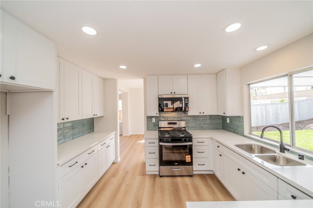 Welcome to beautifully REMODELED 30211 Westlake Drive - ideally located near Menifee Lakes, just a short stroll to the water and surrounding walking trails. Attractive curb appeal is just the start! Step inside to a bright and airy living space featuring vaulted ceilings and an abundance of natural light. A formal dining area offers the perfect setting for entertaining while the fully revitalized kitchen showcases NEW cabinetry, countertops, backsplash and appliances! Just off the kitchen an additional family room provides a cozy retreat with fireplace. The main floor also includes a convenient laundry room and bathroom. Upstairs you'll find 3 well-appointed bedrooms all with NEW carpet, including primary bedroom with ensuite bathroom along with an additional full bathroom with dual sinks tastefully updated with designer inspired finishes. Additional upgrades include NEW vinyl plank flooring throughout the main living areas and kitchen, fresh interior and exterior paint, along with new lighting fixtures and hardware, giving the home a modern move-in ready feel. Outside you will find a nicely sized backyard with covered patio, grassy area and built in BBQ perfect for outdoor gatherings and everyday living! Prime location just steps from community amenities including the lake, scenic walking trails and more! You'll also enjoy proximity to new shopping, tons of dining options and easy freeway access. Don't miss this one!