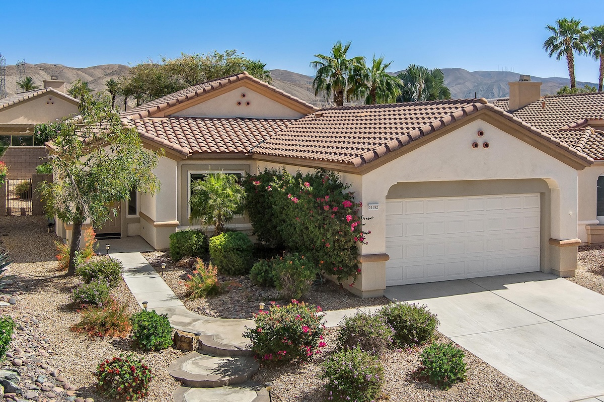 Exceptional value in Del Webb Sun City Palm Desert, this 2BD/2BA home is priced to sell and among the lowest-priced properties in the community. Located in a quiet interior setting close to a clubhouse, the home offers a functional layout with a spacious primary suite featuring a large walk-in closet, a guest bedroom and bath, and a private back patio for outdoor enjoyment. The 2-car garage and low-maintenance desert landscaping add everyday convenience, with room to update or personalize to your taste. Unfurnished and offered without refrigerator, washer, or dryer. Residents enjoy resort-style living with access to golf, multiple pools, tennis, pickle ball, fitness centers, dining, and an active social calendar. A great opportunity for full-time or seasonal living at an attractive price. Property to be sold as-is. Buyer to pay one-time HOA Reserve Replenishment Assessment of $2652.